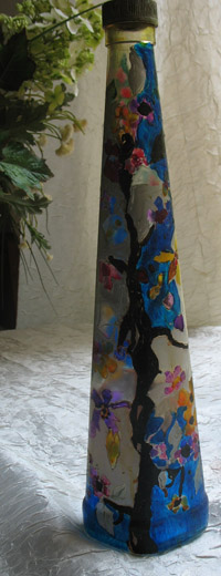 Бутылка "Яблони в цвету" (Техника оформления: краски для стекла) |