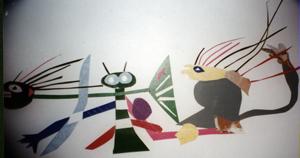 Коллаж - цветная бумага, вырезки из старых журналов, фотографии и рисунки)