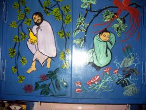 (материалы: дощечка ДСП, гипс, акриловые краски, позолота)