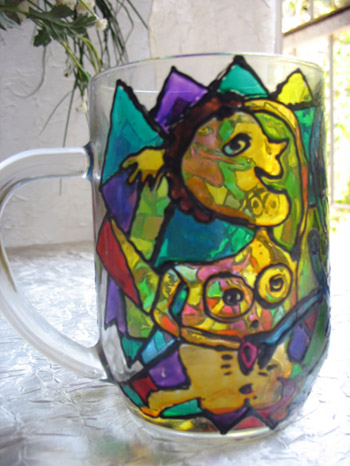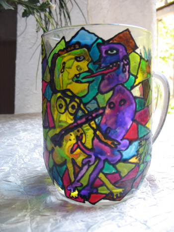 Пивная кружка "Пикассо" (Техника оформления: краски для стекла) |