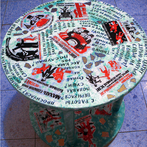 Журнальный столик "Лос Капарос" (Техника оформления: акриловые краски, лак, плакаты "Окна Роста") |