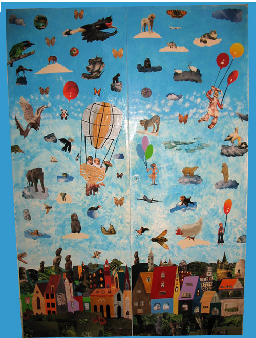 Платяной встроенный шкаф (Материалы: аппликация из рекламных страниц старых журналов) |