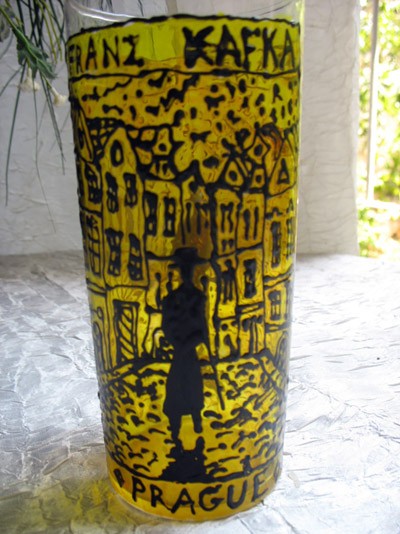 Стакан "Кафка. Прага" (Техника оформления: черный карандаш для обводки) |